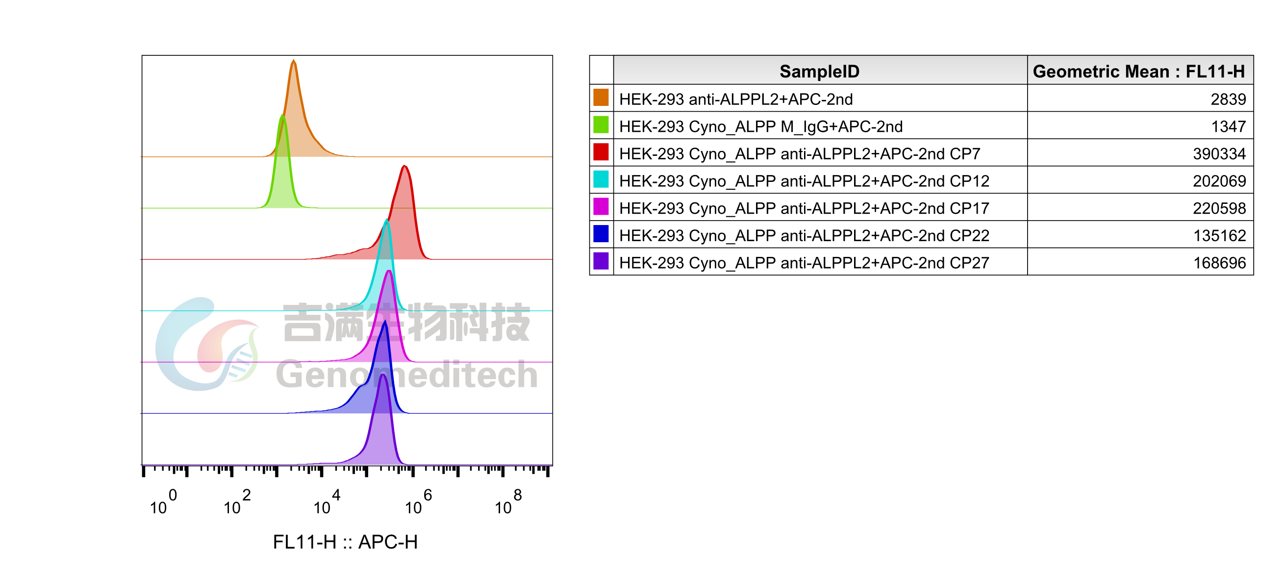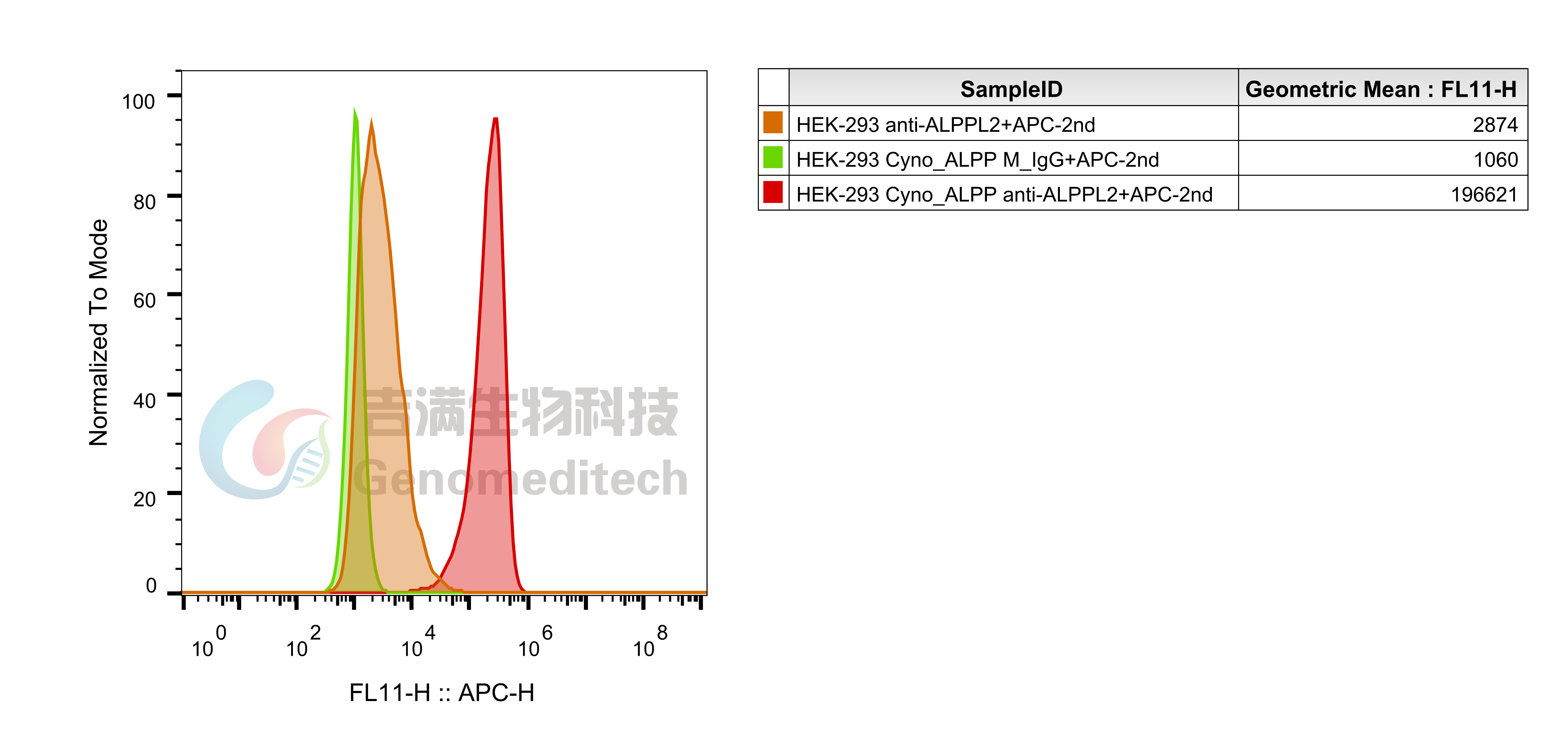 Cynomolgus_ALPP HEK-293 Cell Line was determined by flow cytometry using Anti-ALPPL2 mIgG2a antibody(SGN-ALPV) (Genomeditech/GM-58773AB).