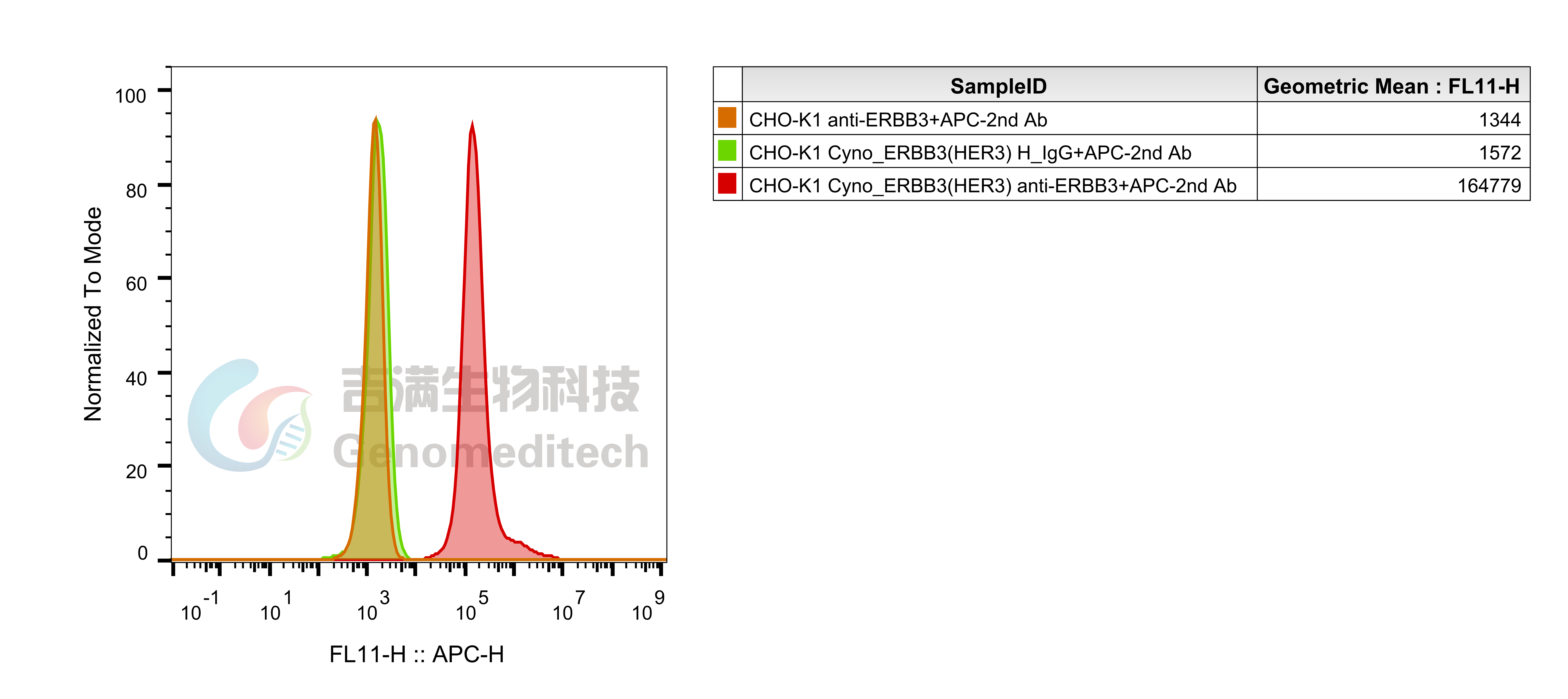 Cynomolgus_ERBB3(HER3) CHO-K1 Cell Line (Cat. GM-C21326) was determined by flow cytometry using Anti-H_ERBB3(HER3) hIgG1 Antibody(Barecetamab) (Cat. GM-28858AB).