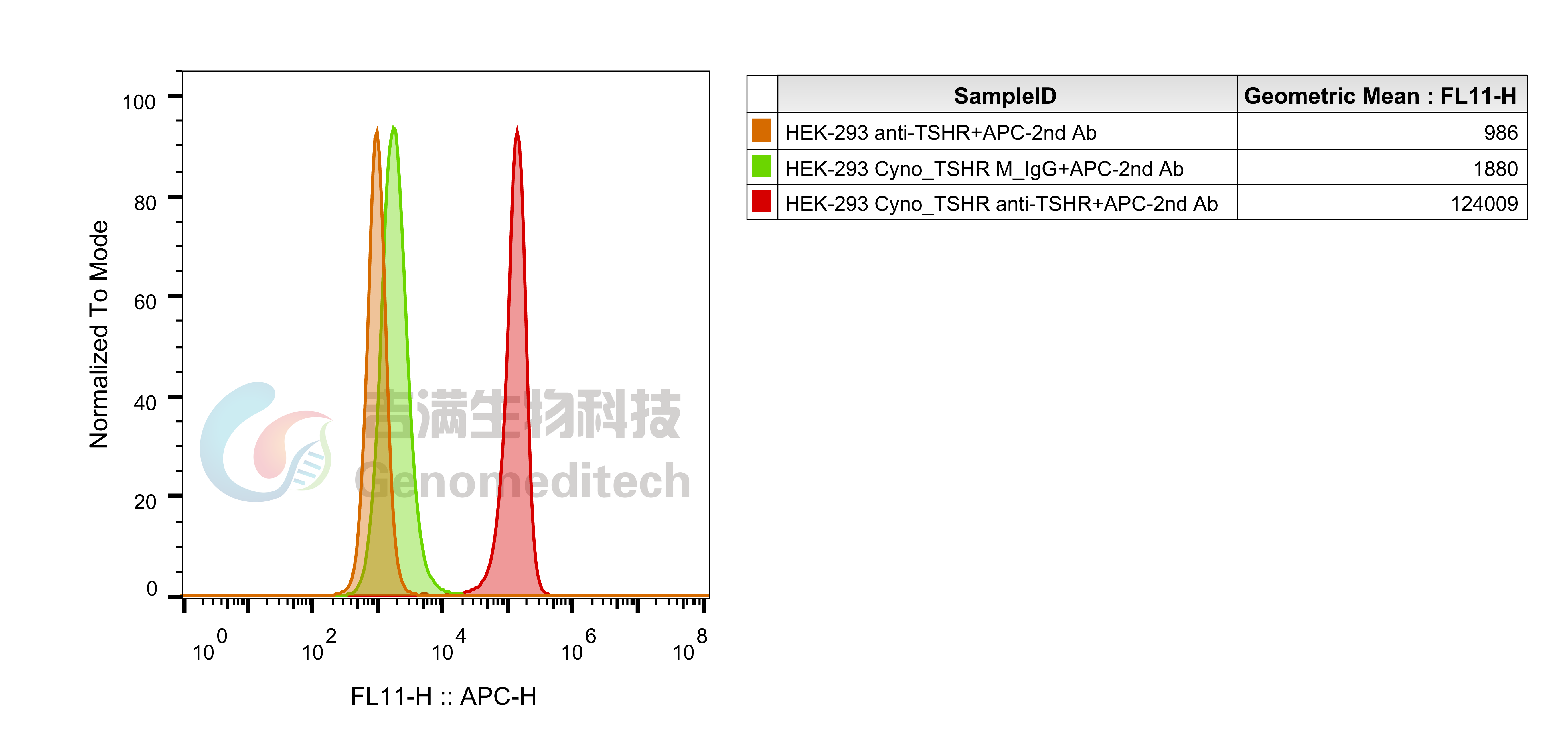 Cynomolgus_TSHR HEK-293 Cell Line (Cat. GM-C39978) was determined by flow cytometry using Anti-TSHR mIgG2a Antibody(KSAb2) (Cat. GM-87935AB).