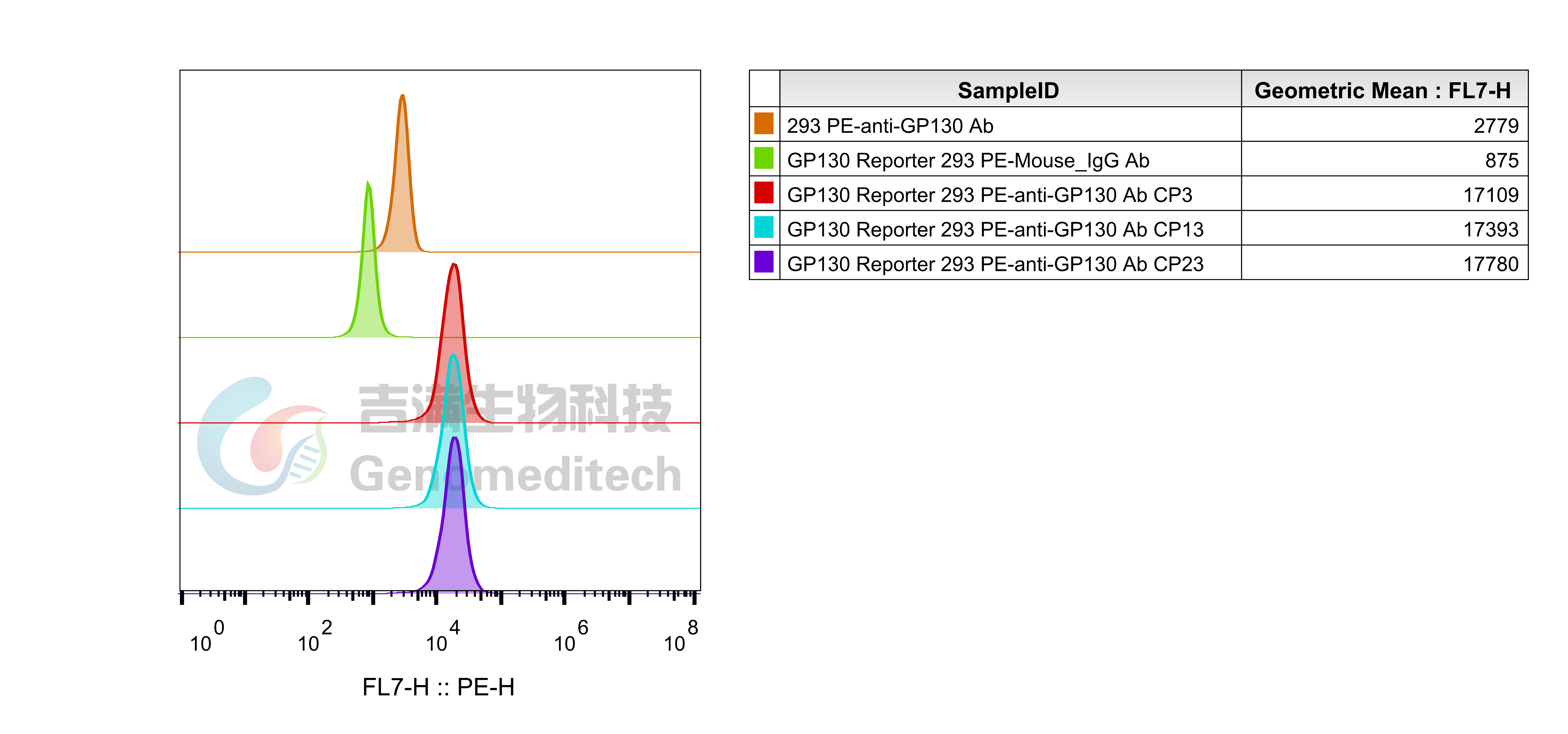 The passage stability of the GP130 Reporter 293 Cell Line (Cat. GM-C39792) was determined by flow cytometry using AIL6ST/gp130/CD130 Antibody (PE) (SinoBiological/10974-MM11-P).