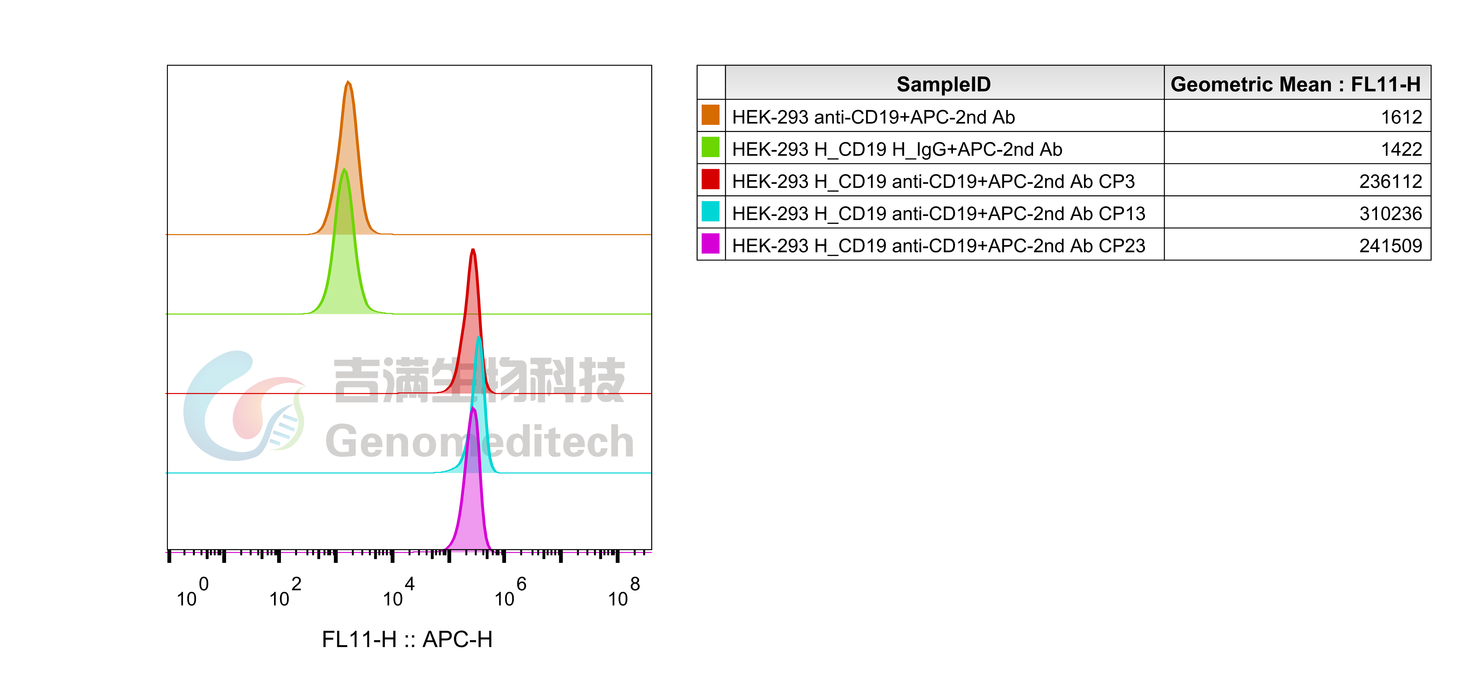 H_CD19 HEK-293 Cell Line (Cat. GM-C38943) was determined by flow cytometry using Anti-CD19 hIgG1 Reference Antibody (Loncbio) (Cat. GM-87912MAB).