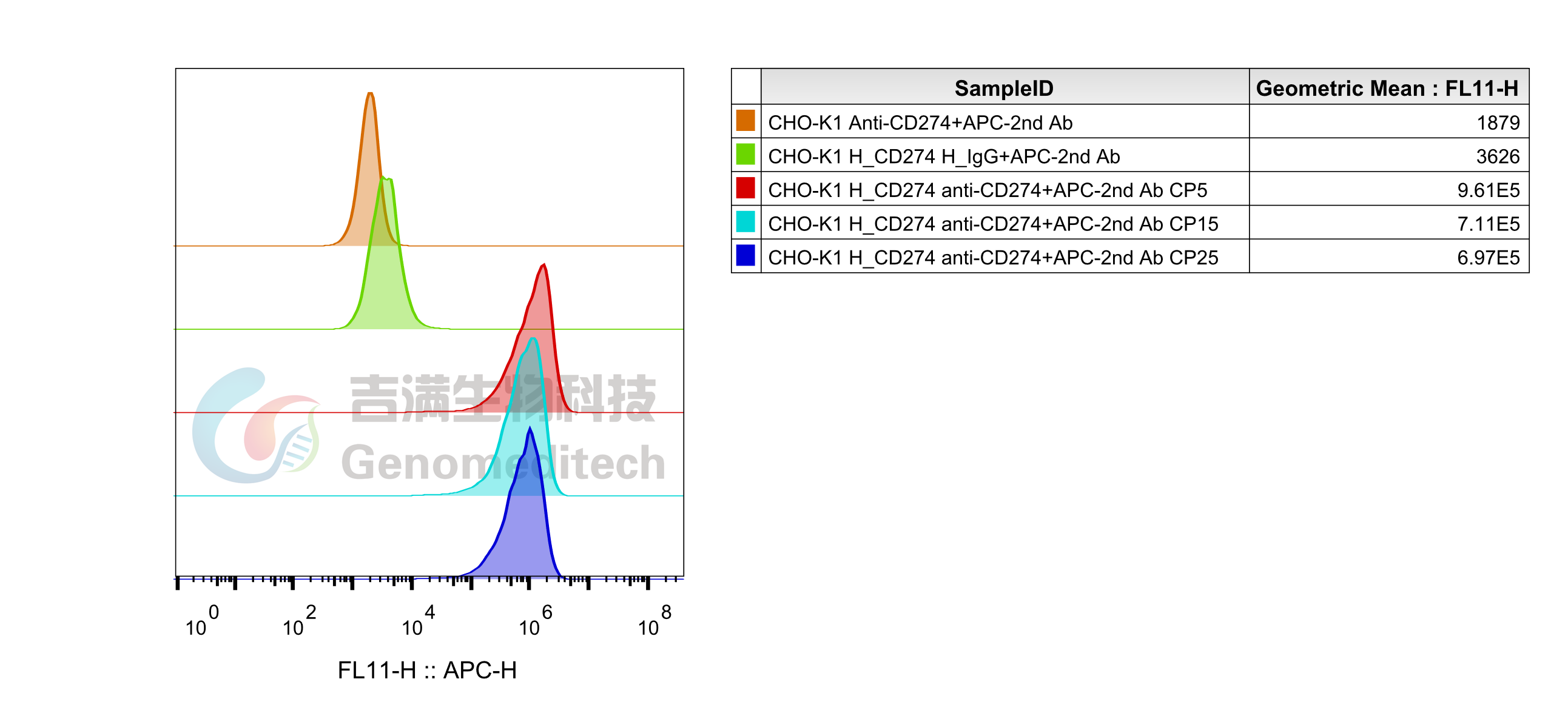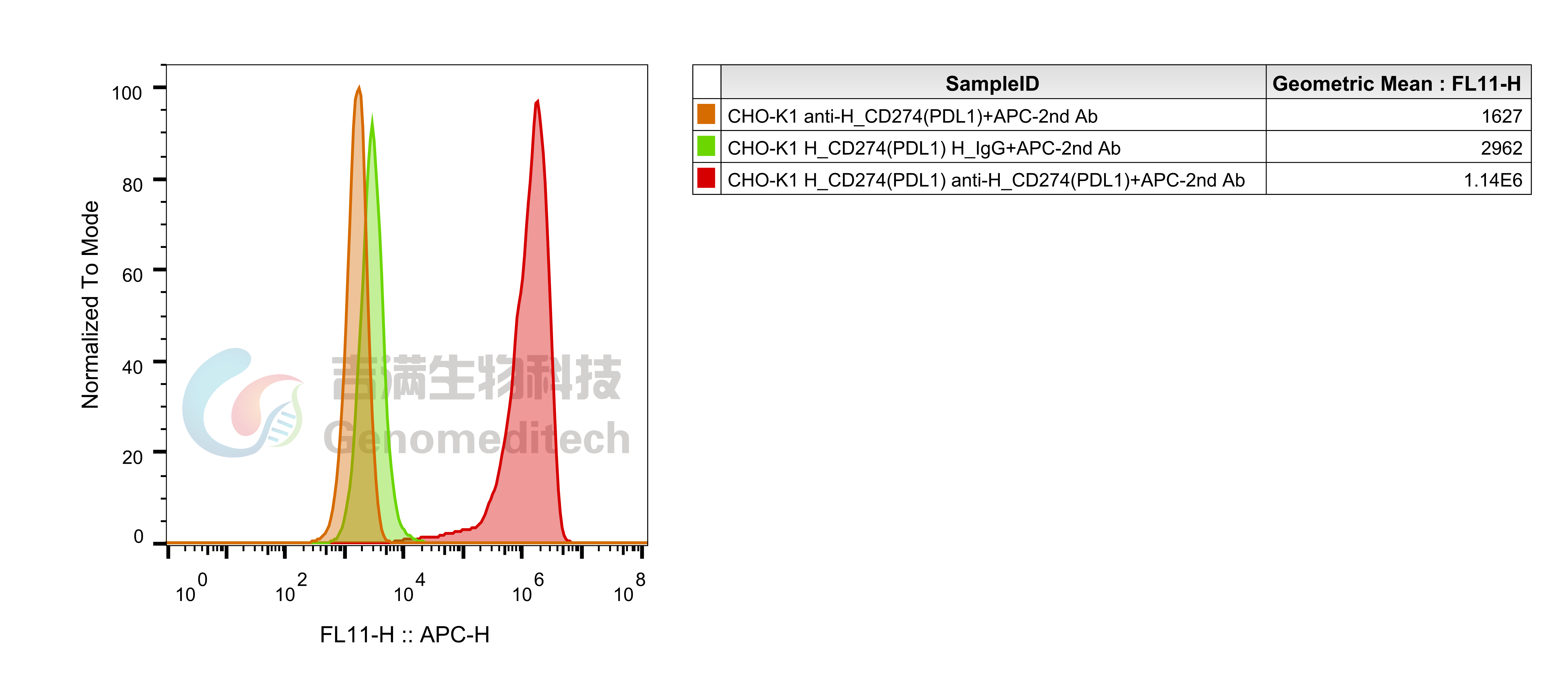 H_CD274(PD-L1) CHO-K1 Cell Line was determined by flow cytometry using Anti-H_CD274(PDL1) hIgG1 Antibody(Atezolizumab) (Genomeditech/GM-31740AB).