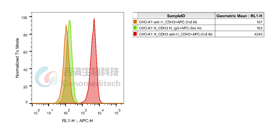 H_CDH3 CHO-K1 Cell Line (Cat. GM-C24261) was determined by flow cytometry using Anti-H_CDH3 hIgG1 Antibody (Cat. GM-46573AB).