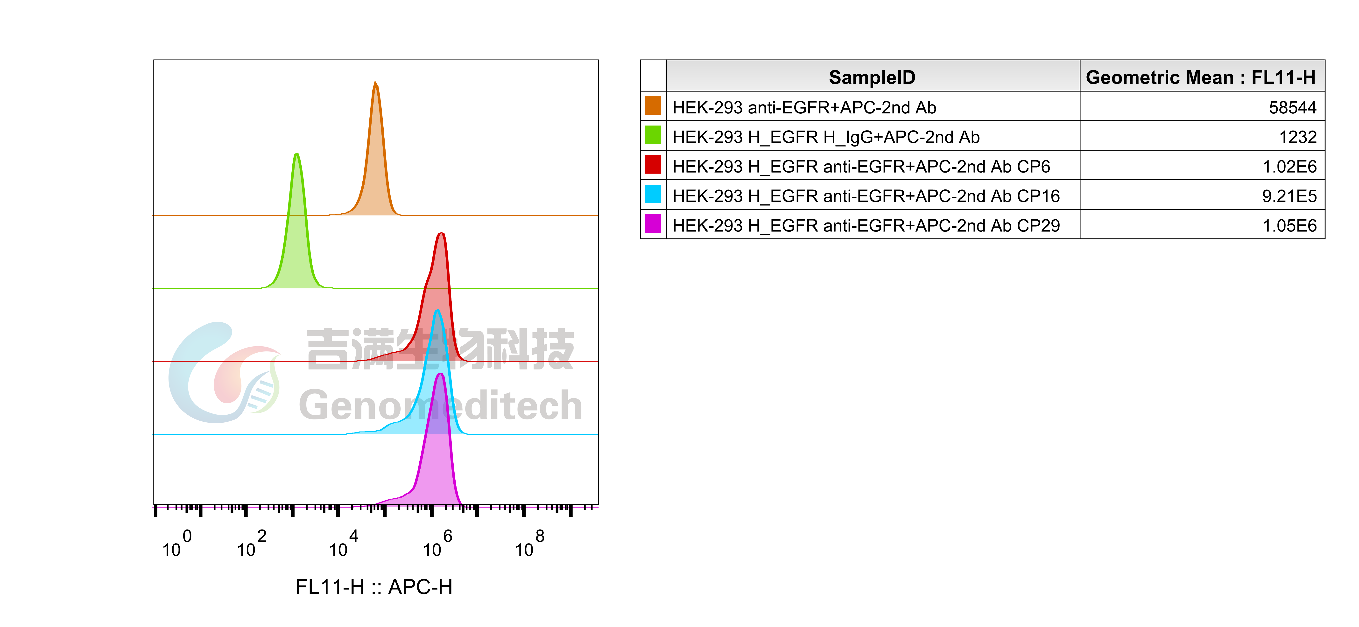 H_EGFR HEK-293 Cell Line (Cat. GM-C25101) was determined by flow cytometry using Anti-H_EGFR hIgG1 Antibody(Necitumumab) (Cat. GM-49155AB).