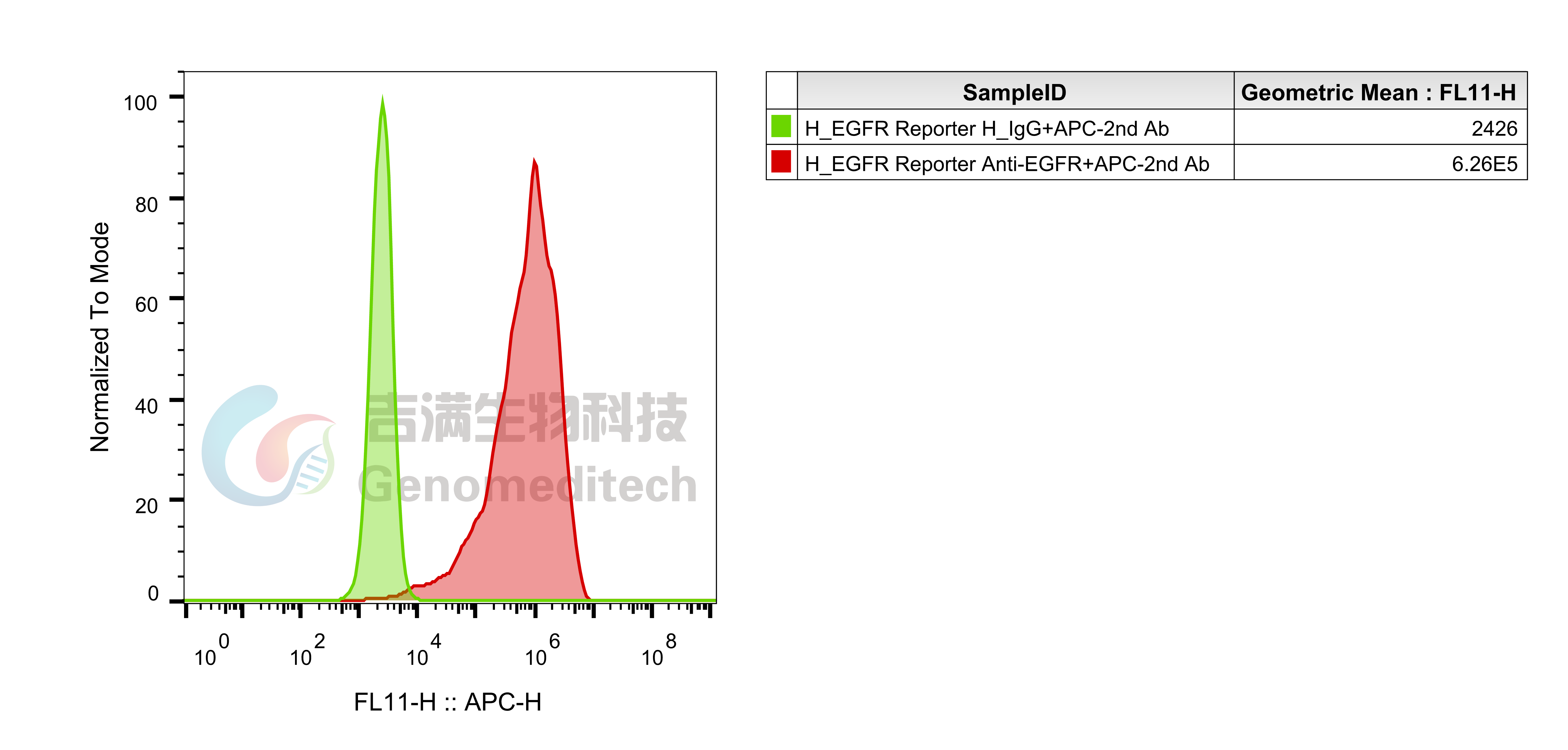H_EGFR Reporter Cell Line (Cat. GM-C29969) was determined by flow cytometry using Anti-H_EGFR hIgG1 Antibody(Necitumumab) (Cat. GM-49155AB).