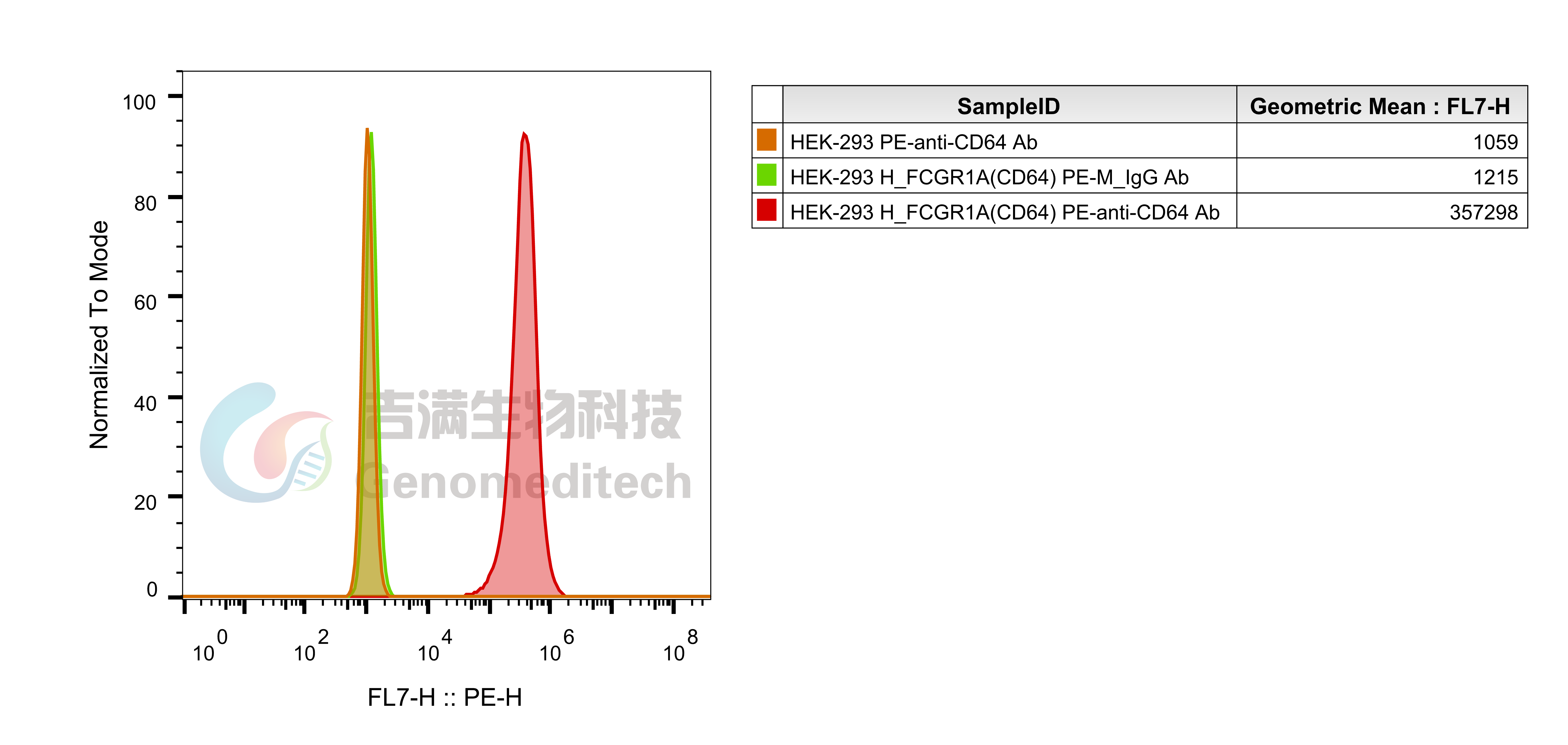 H_FCGR1A(CD64) HEK-293 Cell Line was determined by flow cytometry using PE anti-human CD64 Antibody (Biolegend/305007).