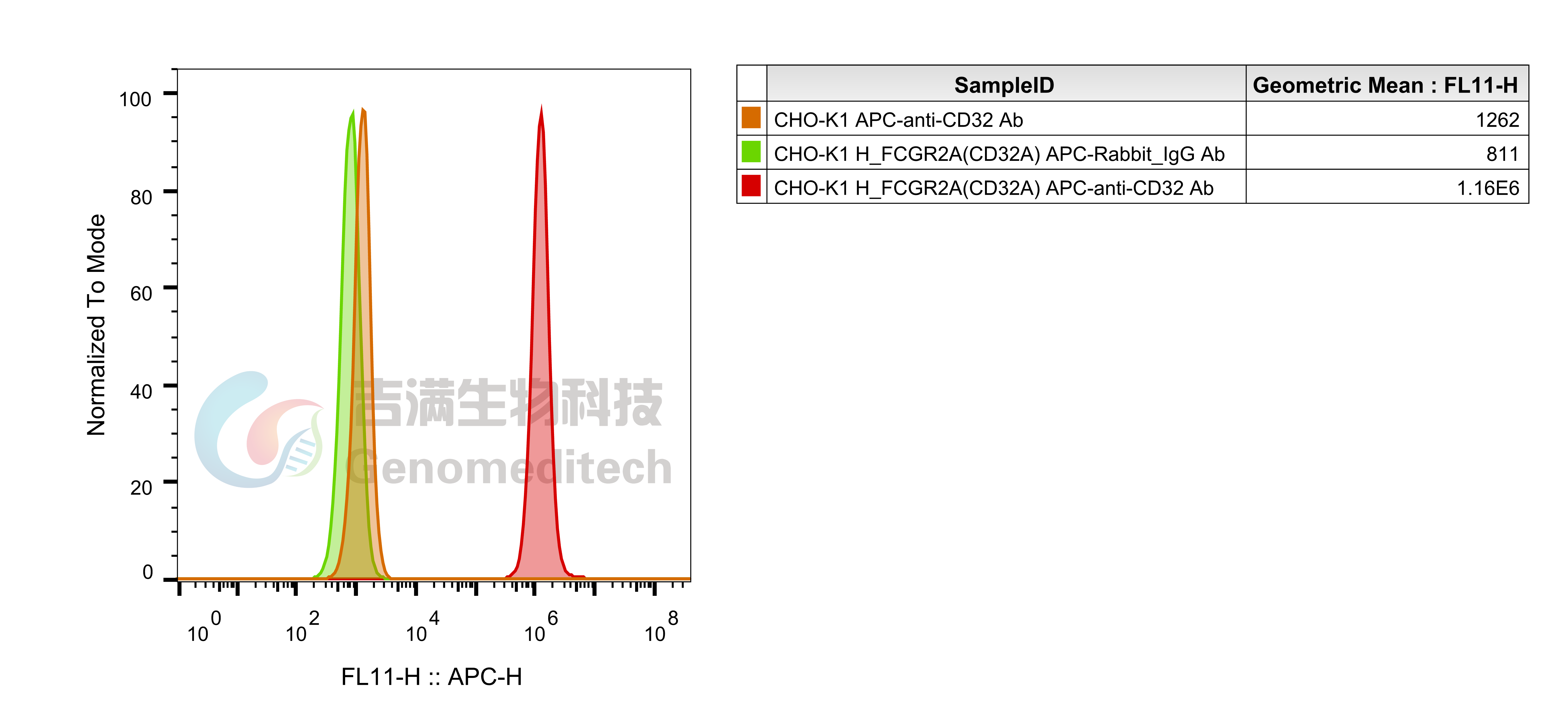H_FCGR2A(CD32A) CHO-K1 Cell Line (Cat. GM-C24472) was determined by flow cytometry using ABflo® 647 Rabbit anti-Human CD32 mAb (abclonal/A27966).