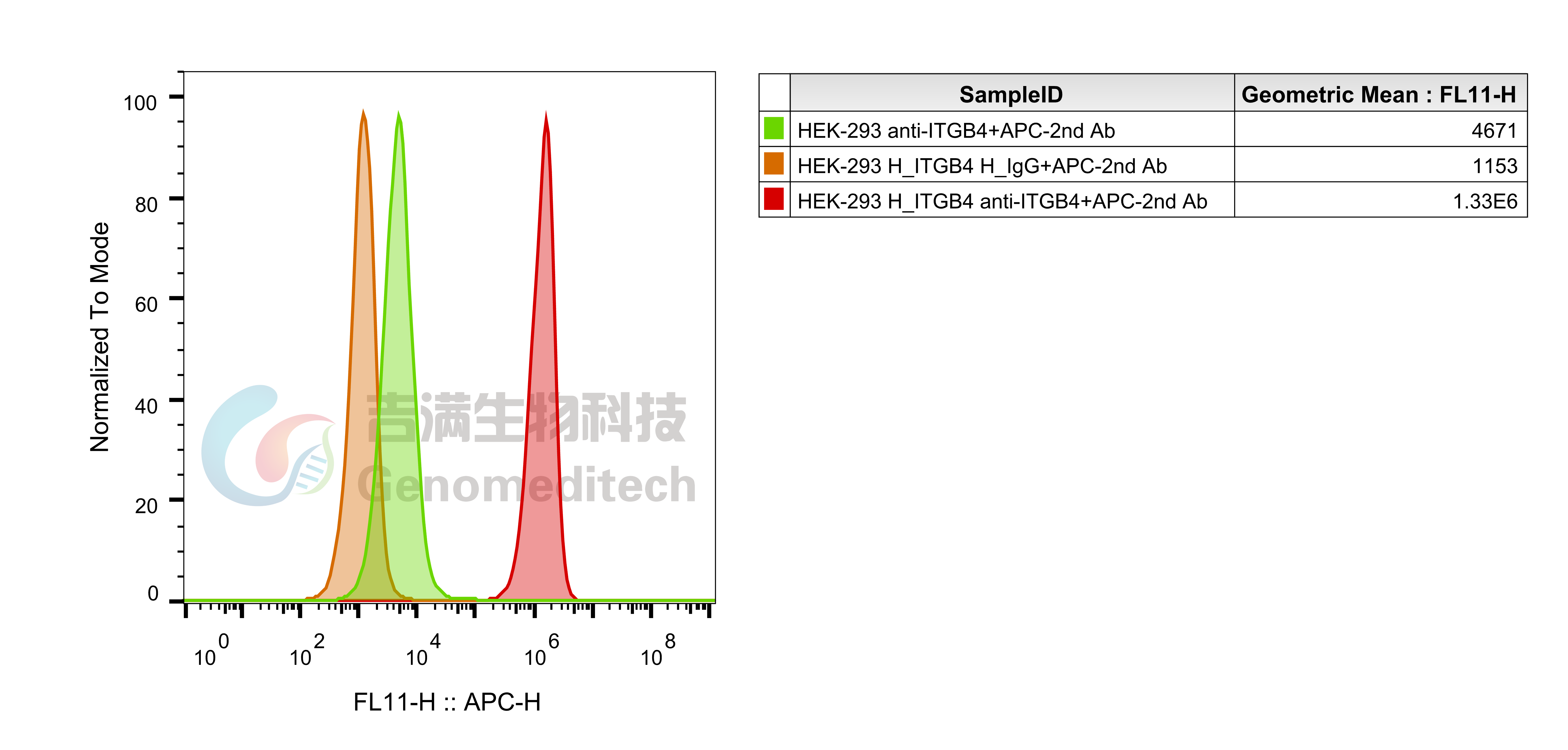 H_ITGB4 HEK-293 Cell Line (Cat. GM-C42585) was determined by flow cytometry using Anti-ITGB4 hIgG1 Antibody(H86.2) (Cat. GM-88291AB).