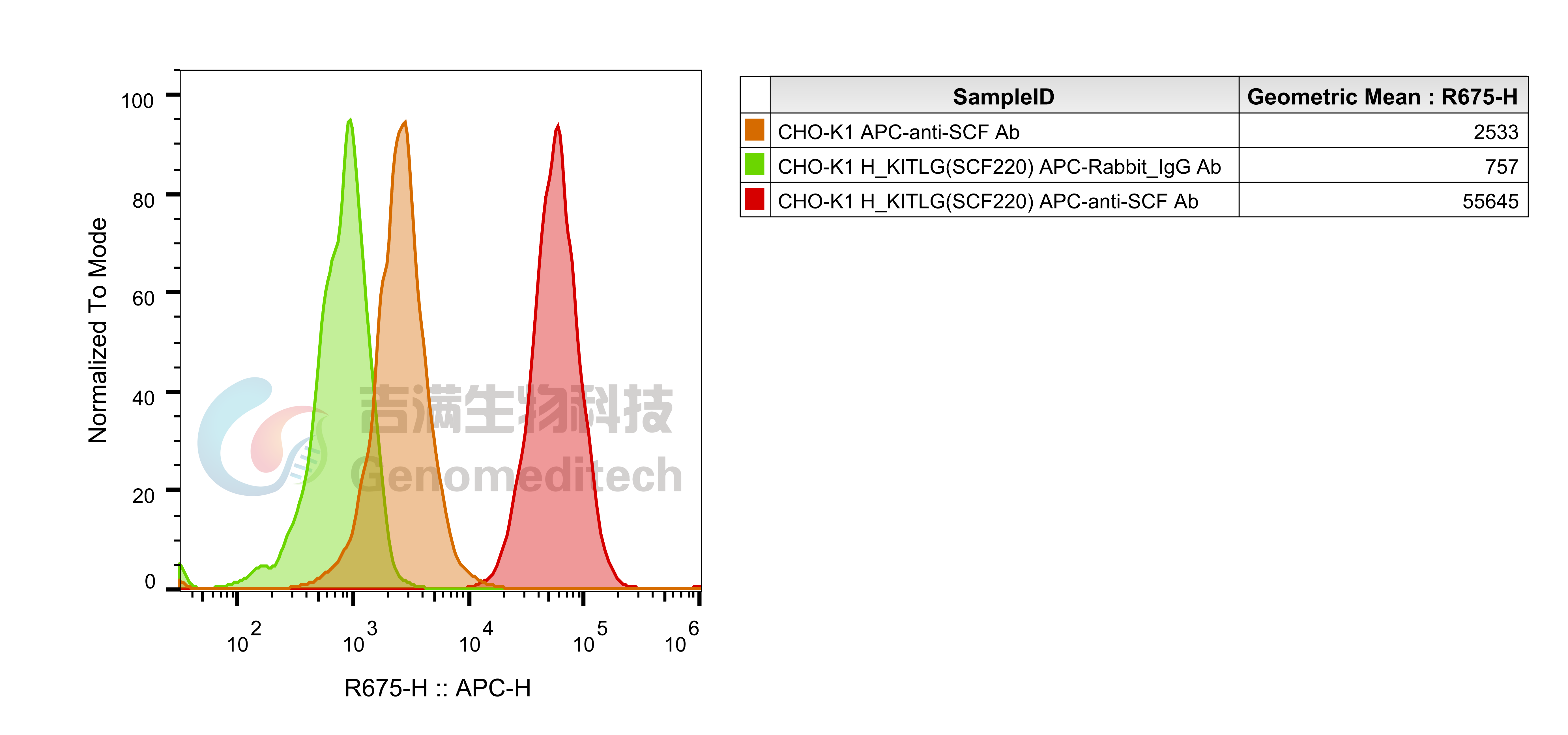 H_KITLG(SCF220) CHO-K1 Cell Line (Cat. GM-C44840) was determined by flow cytometry using Anti-SCF[EP665Y] Antibody(abcam/ab306025).