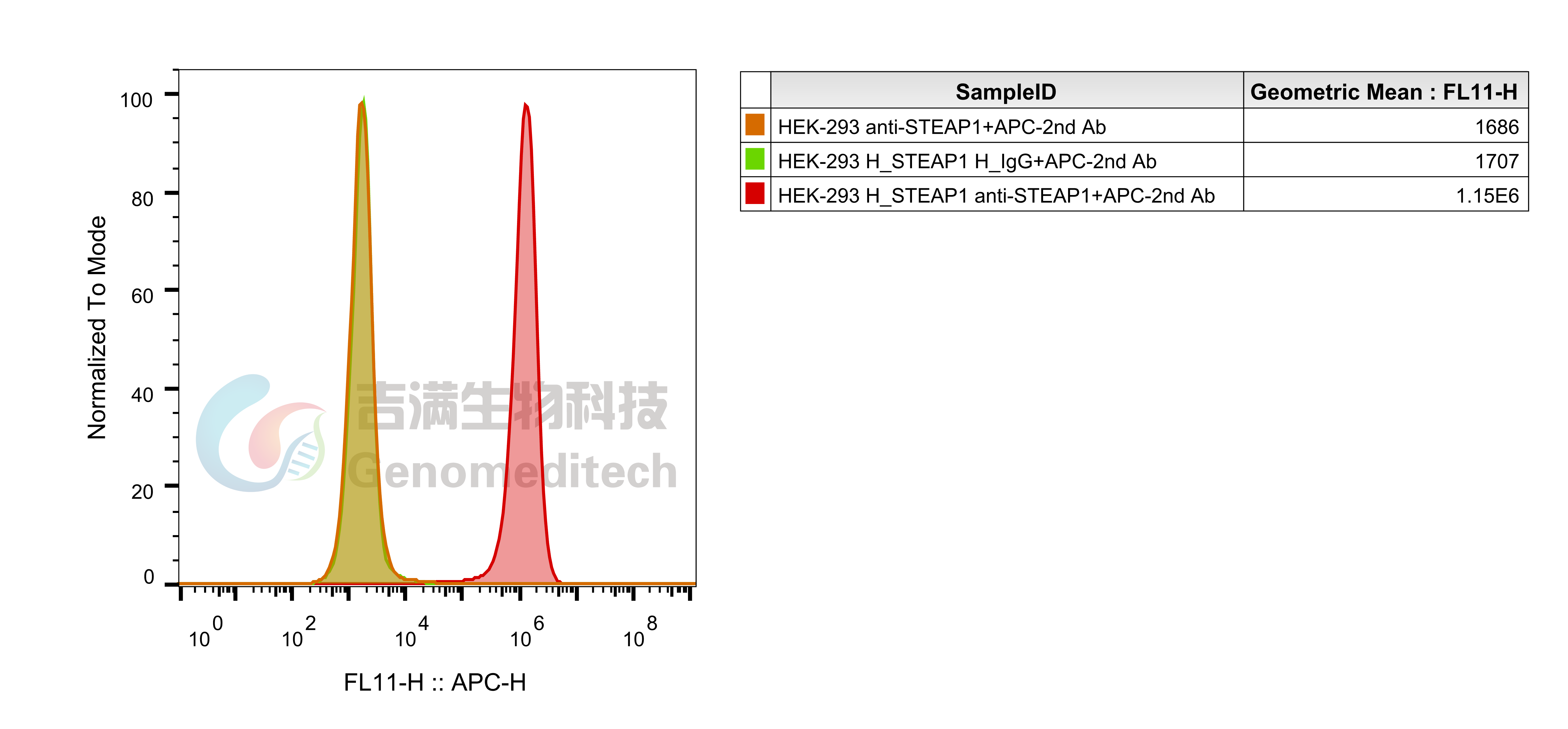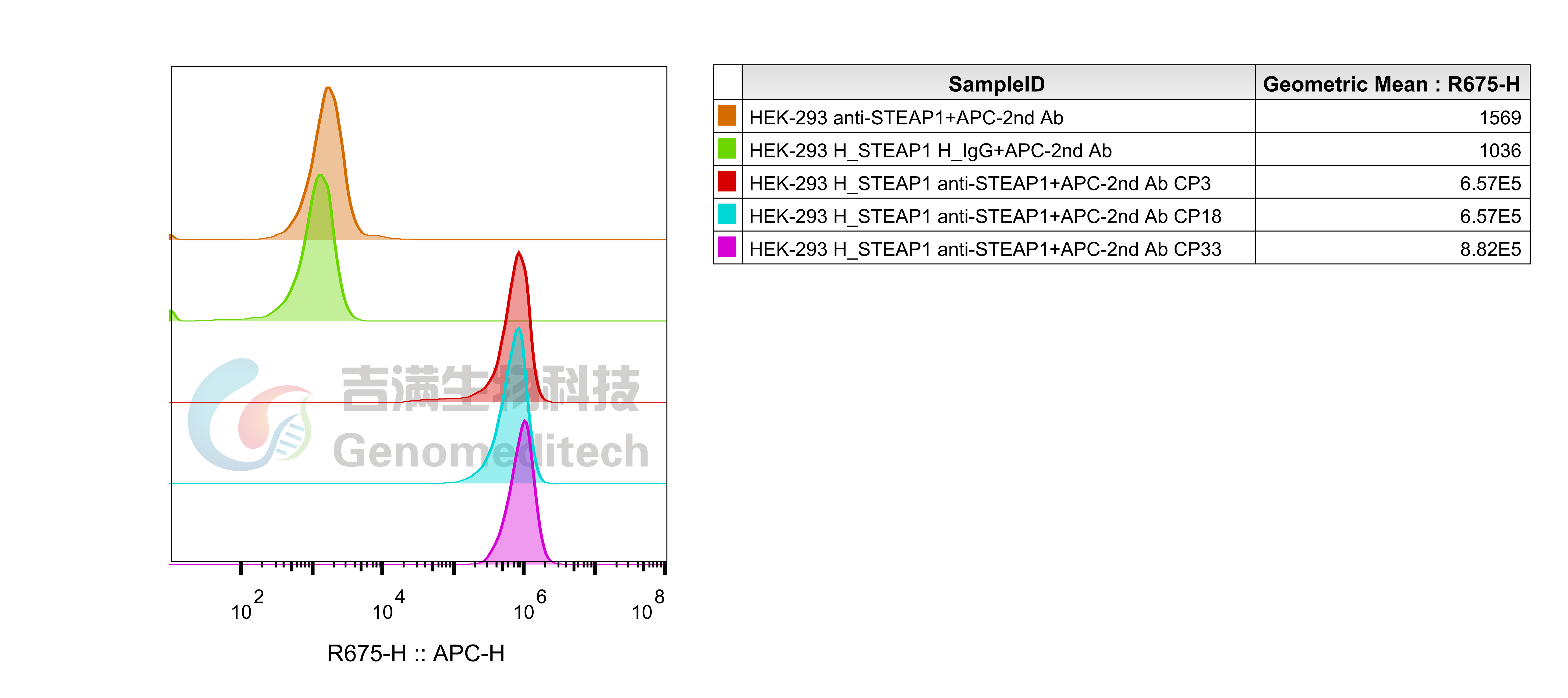H_STEAP1 HEK-293 Cell Line (Cat. GM-C21520) was determined by flow cytometry using Anti-STEAP1 hIgG1 Reference Antibody (Vandbio) (Cat. GM-87355MAB).