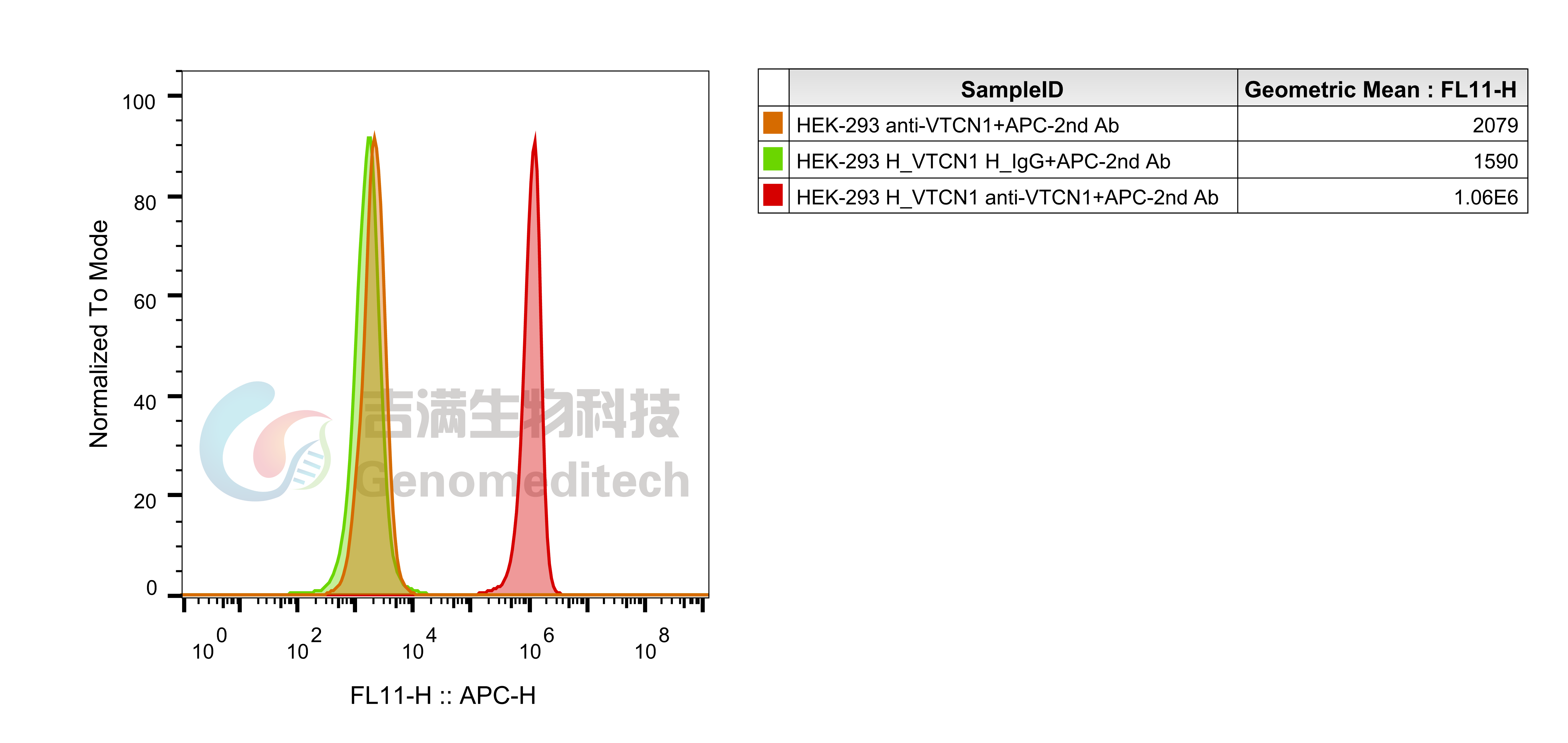H_VTCN1(B7H4) HEK-293 Cell Line was determined by flow cytometry using Anti-H_B7H4(VTCN1) hIgG1 Antibody (Genomeditech/GM-24028AB).