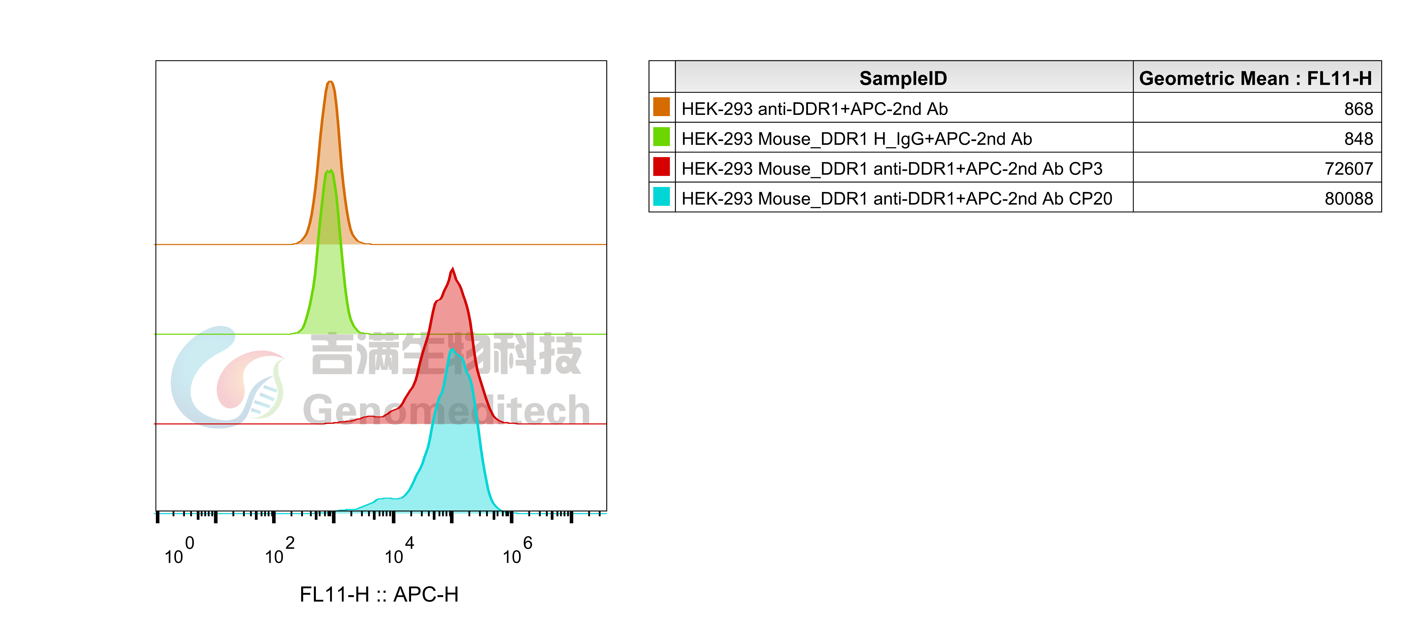 Mouse_DDR1 HEK-293 Cell Line was determined by flow cytometry using Anti-H_DDR1 hIgG1 Antibody (Genomeditech/GM-46777AB).
