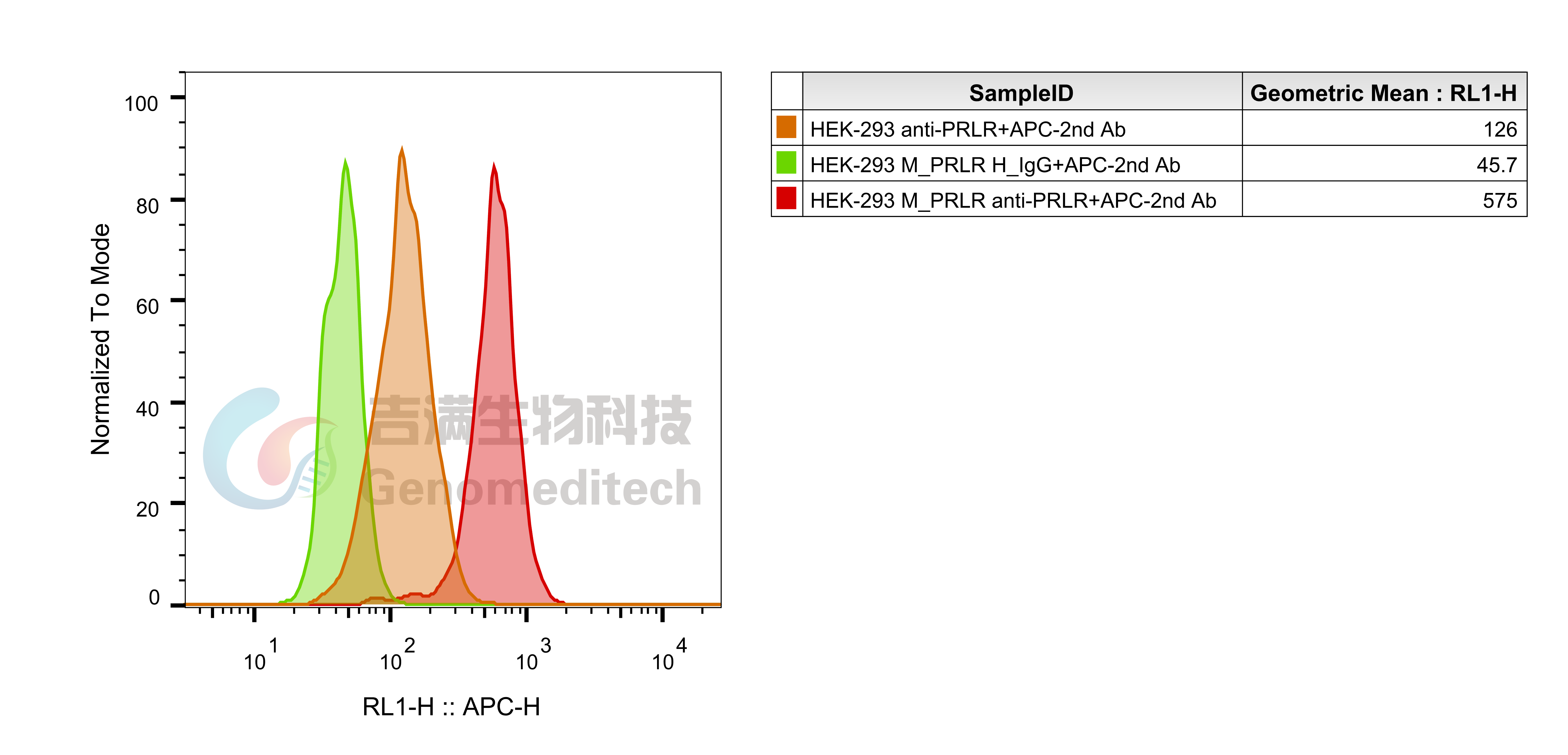 Mouse_PRLR HEK-293 Cell Line was determined by flow cytometry using Anti-PRLR hIgG1 Antibody(Mat3) (Genomeditech/GM-27198AB).